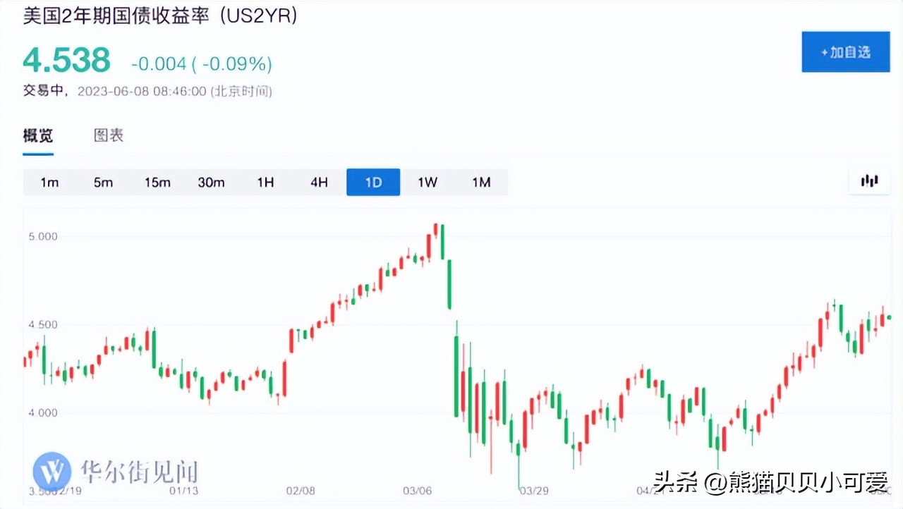 短期債券收益率在最近幾周已經大幅上升,兩年期國債收益率周三收于4.548%,較一個月前觸及的年內低點上漲逾0.8個百分點。10年期國債收于3.782%。