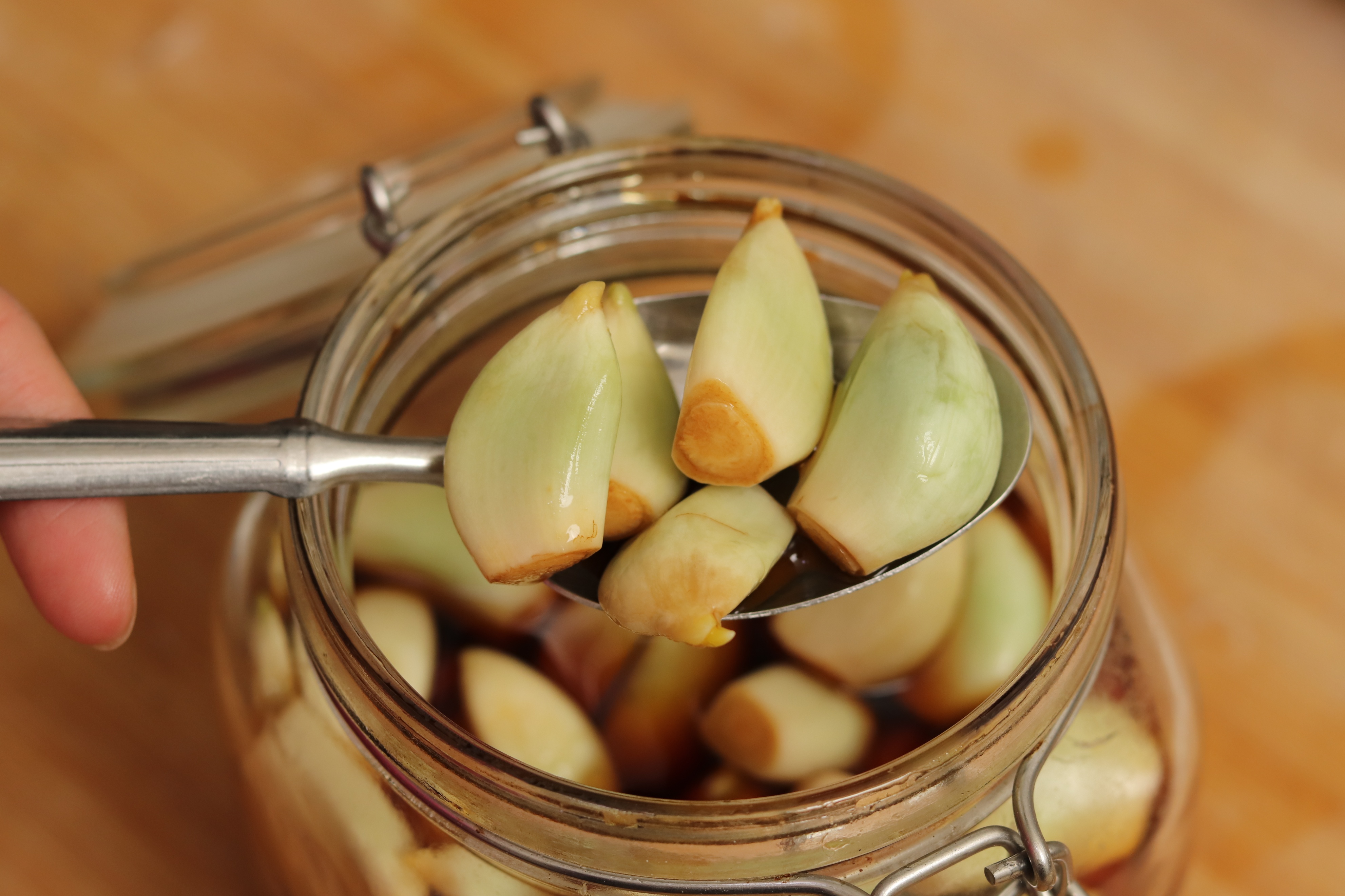1、選蒜的品種很關鍵,最好選擇紫皮大蒜,紫皮蒜蒜瓣比較小,更加容易腌透,而且紫皮蒜要比白皮蒜的味道更加濃郁,并且花青素含量比較高,更加營養好吃,經過醋的浸泡又香又脆,有爛的蒜一定要挑出來,防止腌制過程中變質。