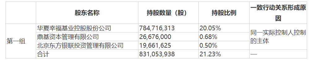 截至2022年2月21日,華夏控股持有華夏幸福股份784716313股,占公司目前總股本3913720342股的20.05%。華夏控股及其一致行動人合計持有華夏幸福股份831053938股,占公司目前總股本的21.23%。