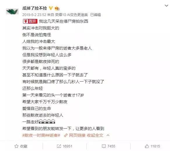 “在生死臨界點的時候,你就會發現,任何的長期熬夜,都等于慢性自殺。”