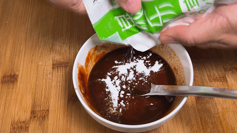 5. 加入淀粉和適量的清水,用勺子攪勻備用