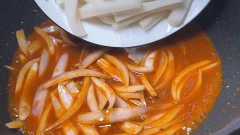 10. 煮2分鐘左右,下入年糕條繼續煮