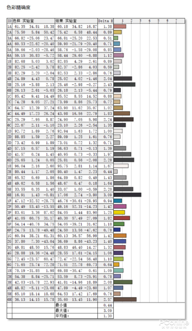不過最令我們驚喜的是色準表現,紅蜘蛛X的測試結果顯示,創維G32 Pro的色準ΔE最小值為0.44,最大值為3.09,平均ΔE僅為1.30。要知道ΔE<2就已經能達到專業顯示器的標準,人眼已經比較難分辨出差異,但是色準始終還是越準越好,色準越高代表電視對色彩的還原能力更加出色,更加能還原影片最原始的色彩。