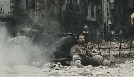 訥維爾小鎮里的兩名狙擊手對決可能是影片中最不符合現實的場面,其實從卡帕索中槍到小隊成員各自隱蔽再由己方狙擊手尋找并殲滅敵人,這一套流程都還好,拍得也相當專業,問題出在最后那一槍,穿過瞄準鏡鏡命中敵方狙擊手的眼睛確實有點太扯了。