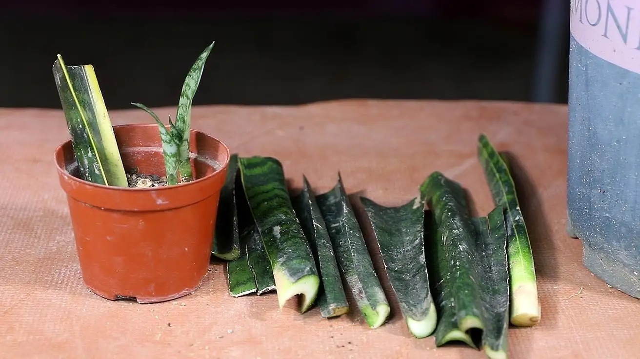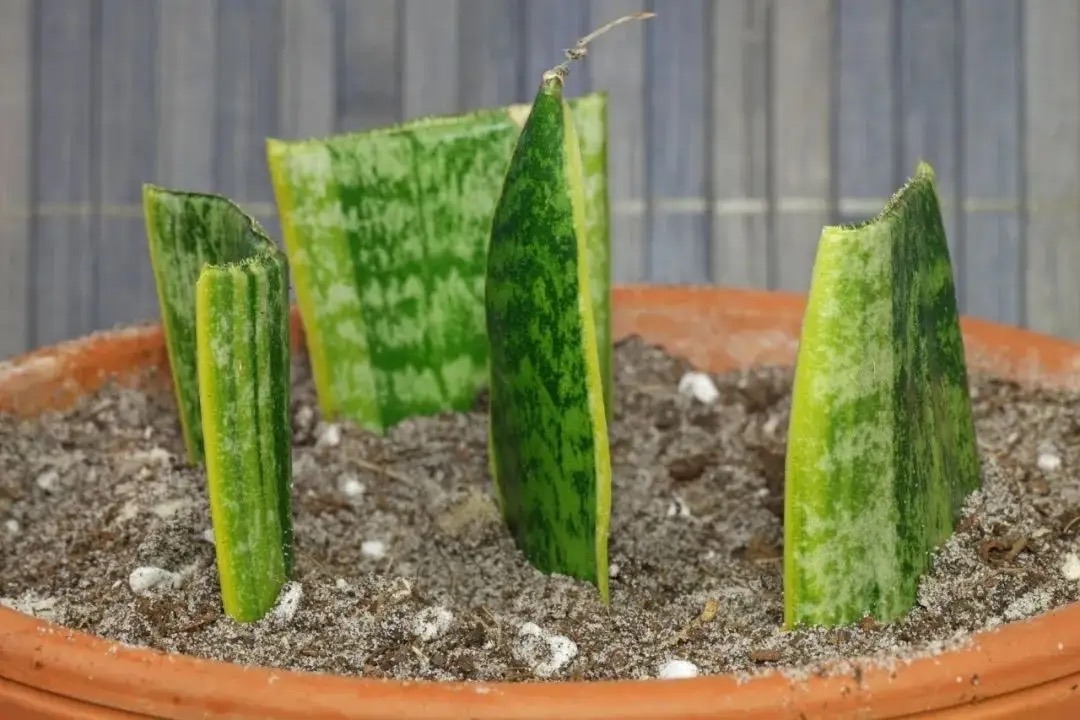 把成熟的虎尾蘭葉片,從植株底部剪下來,然后一片葉子剪成數段,每一段保持在六厘米到十厘米的樣子,然后把這些葉片,扦插到花盆里面,扦插深度為3厘米左右。