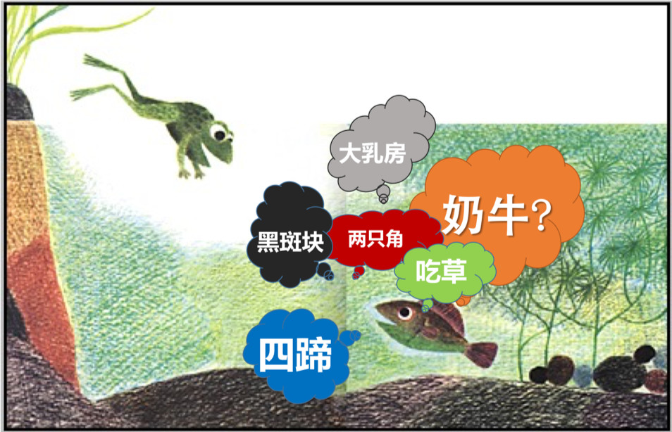 小青蛙可以描述牛的特征,但卻不能代替小魚去建構牛的形象,這就好比教師可以詳細的講述知識點,但不能代替學習者去構建知。