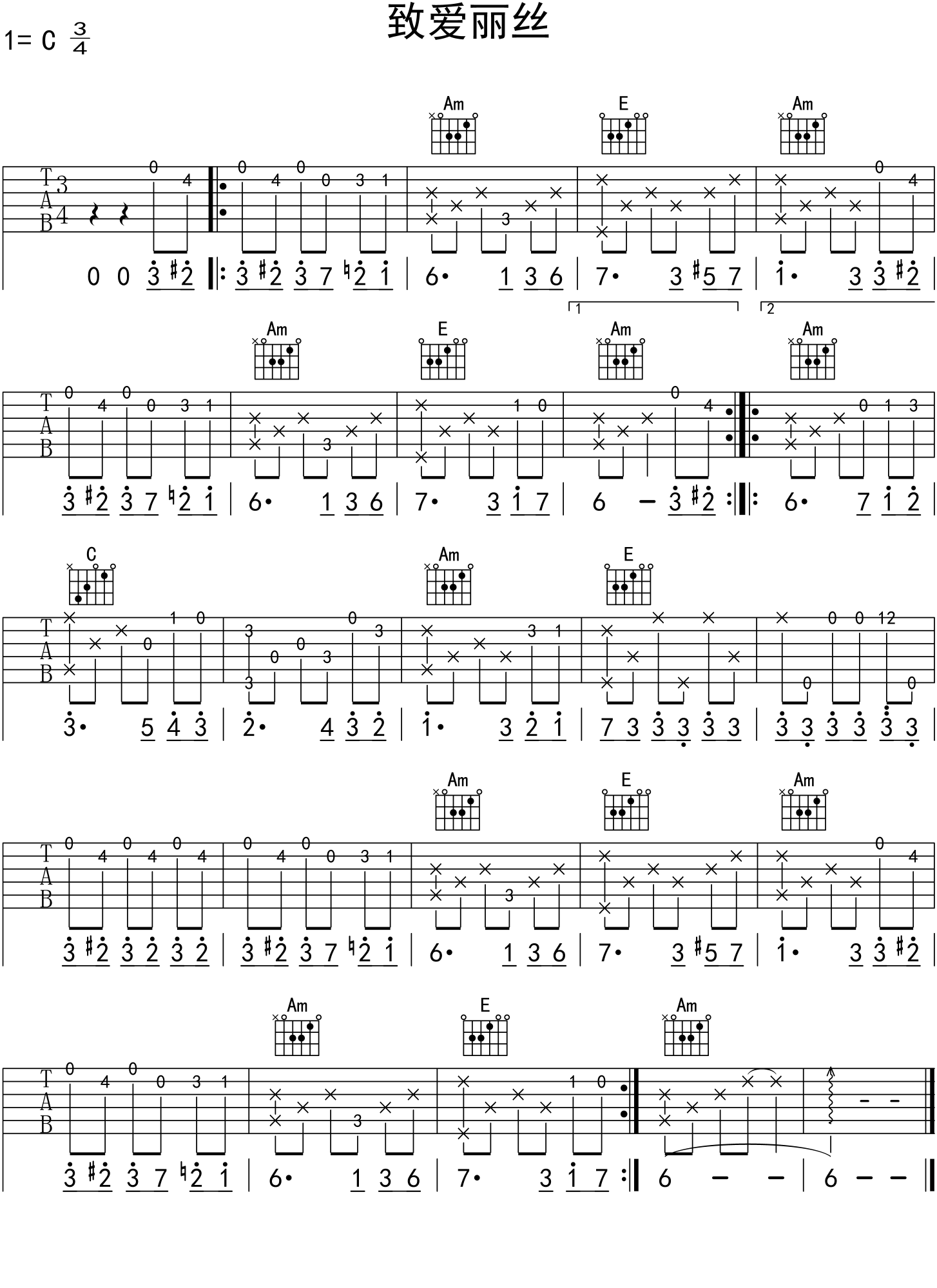 致愛麗絲簡譜 《送別》長亭外簡譜