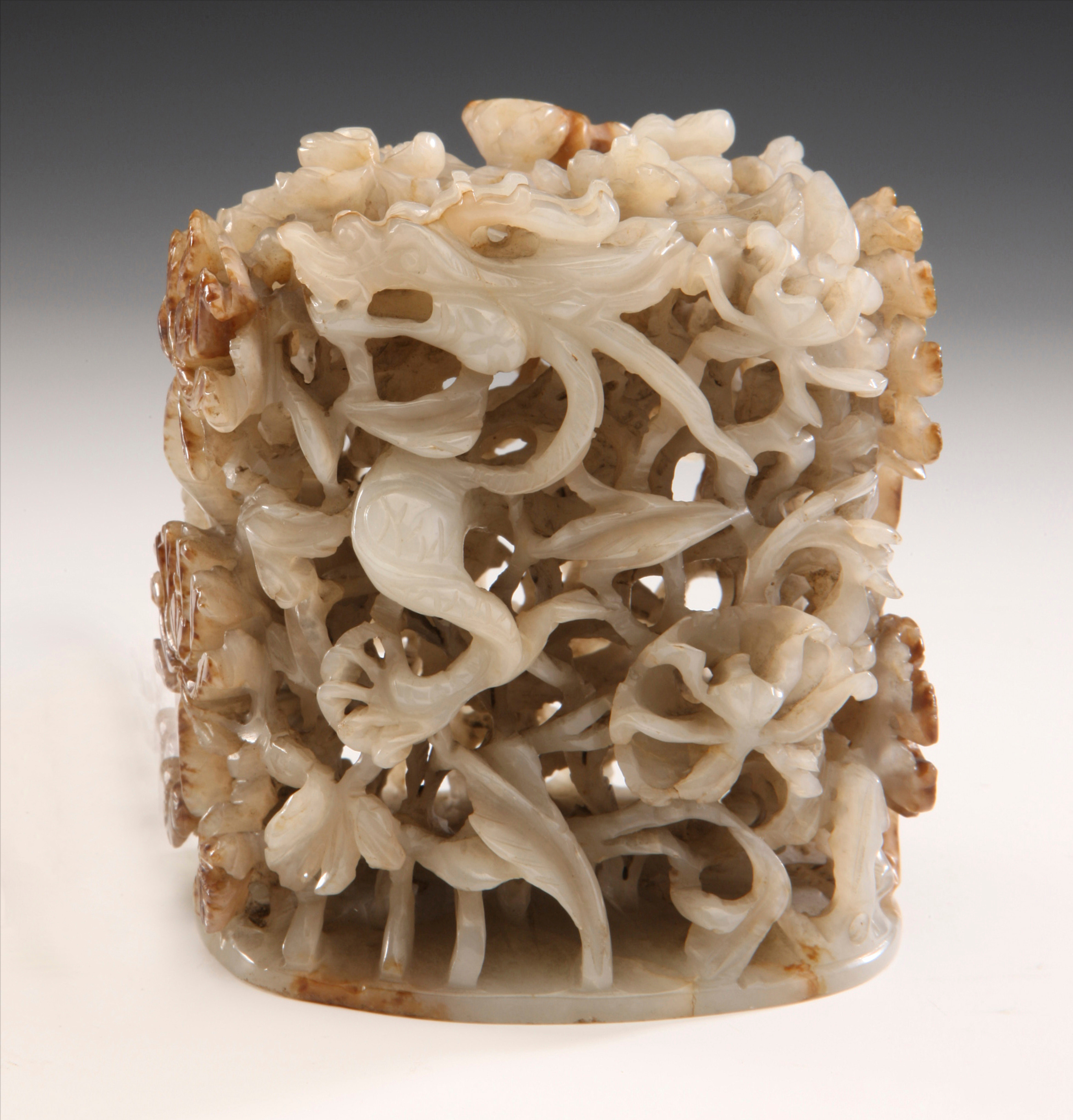 第八 .元代玉鏤雕龍穿牡丹蓋鈕