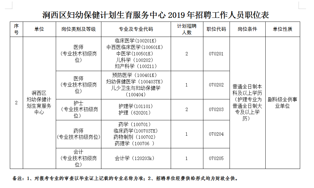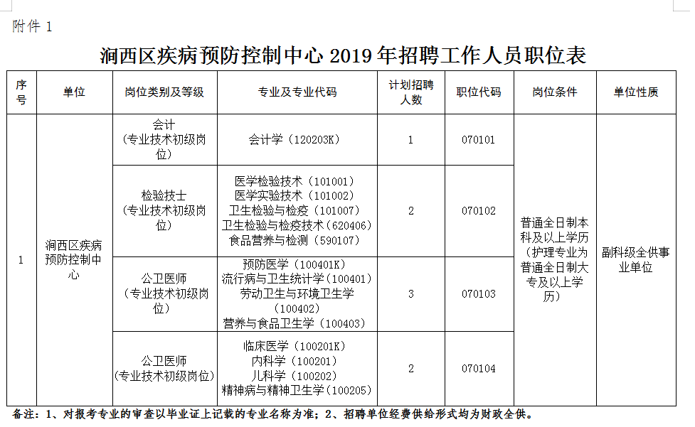 1、2019年澗西區衛健委系統招聘工作人員職位表