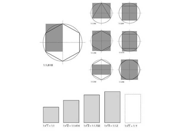 當我們看到黃金比例時,為何會產生視覺上的愉悅?就像是承載了古典主義美學精髓的黃金分割比例“1:1.618”;而當先驅們將有關比例的研究沿用到印刷術上之后,利用圓形與矩形的切割對稱,加之數學計算得到大量不同的黃金比例。