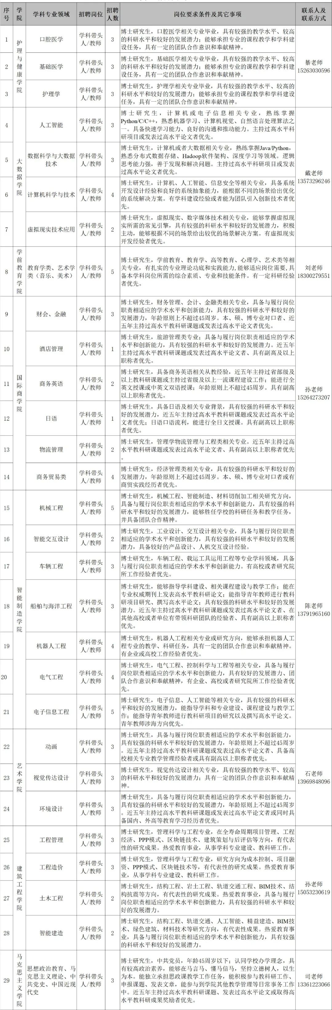 為推動學校高質量發展,現面向海內外誠聘人才,相關待遇及招聘職位如下。