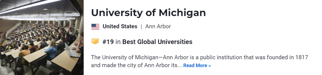 密歇根大學安娜堡分校在2023U.S.News世界大學排名中位列第19