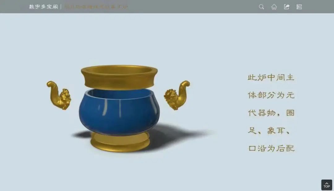 即使在展廳中,我們也很難看清每一件文物的全貌,但是在數字多寶閣中,只需輕輕滑動鼠標,文物便可以翻轉、放大,甚至拆解,收獲360°無死角的文物觀賞體驗。