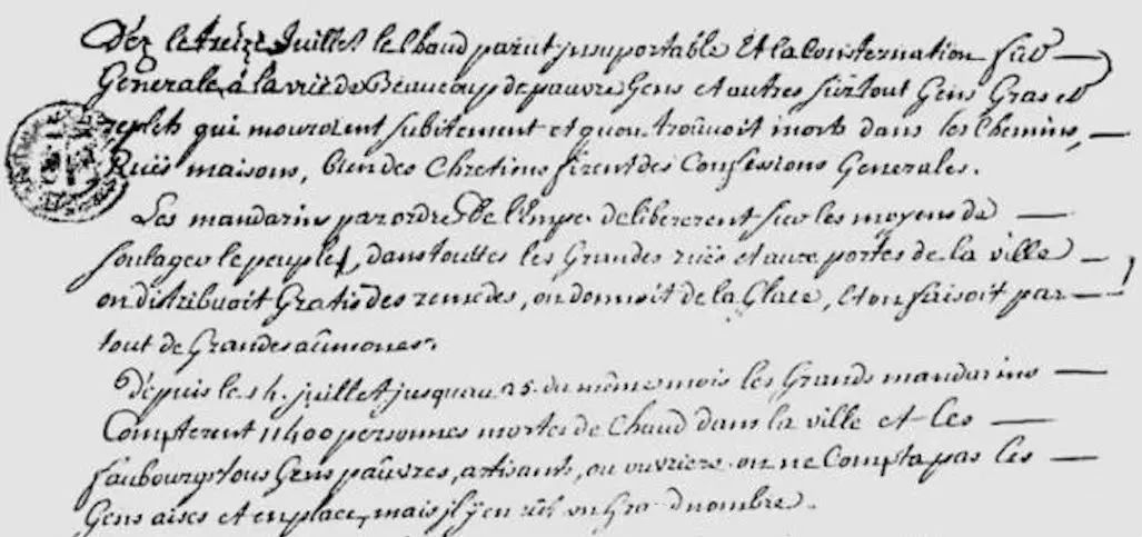 這次“大熱”期間的氣溫到底有多少度?當時在華的法國傳教士宋君榮記錄了北京酷熱的情況,并用歐洲帶來的溫度計做了詳細觀測。