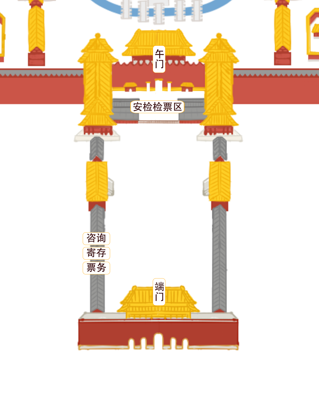 同時,寄存處由原午門內西側移至端門廣場西側,便于大家提前寄存。取包處位置未變,還在神武門內廣場西側!