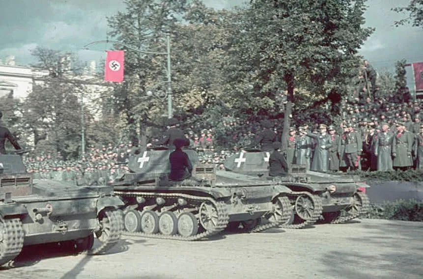 1936年,當古德里安邀請富勒參觀他的坦克部隊演習時,富勒感慨萬千。1939年4月,希特勒50大壽,進行了聲勢浩大的閱兵,邀請富勒出席。在觀禮臺上,德軍的坦克部隊排成整齊的隊形,轟隆隆地從富勒面前駛過。