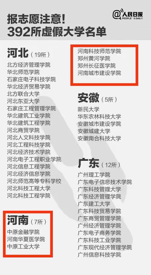 具體來說,鄭州有正規的中原工學院,這個中原工業大學就是虛假,新鄉有正規大學河南科技學院,這個河南科技師范學院就是一所“野雞大學”,平頂山有正規高校河南城建學院,這個河南城市建設學院就是虛假大學。所以說大家還是需要擦亮眼睛的,不能上當受騙。