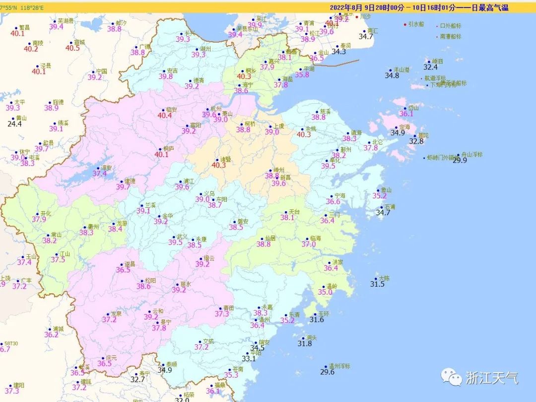 受副熱帶高壓控制,近期內我省以晴熱高溫天氣為主。預計明天后天最高溫度舟山、溫州、臺州東部地區35-37℃,其它地區大部38-41℃,局部41℃以上。