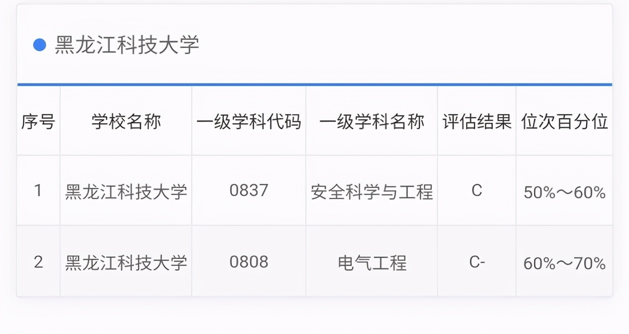 黑龍江科技大學的學科成績看來一般般,最牛的安全科學與工程才c,電氣工程c-。