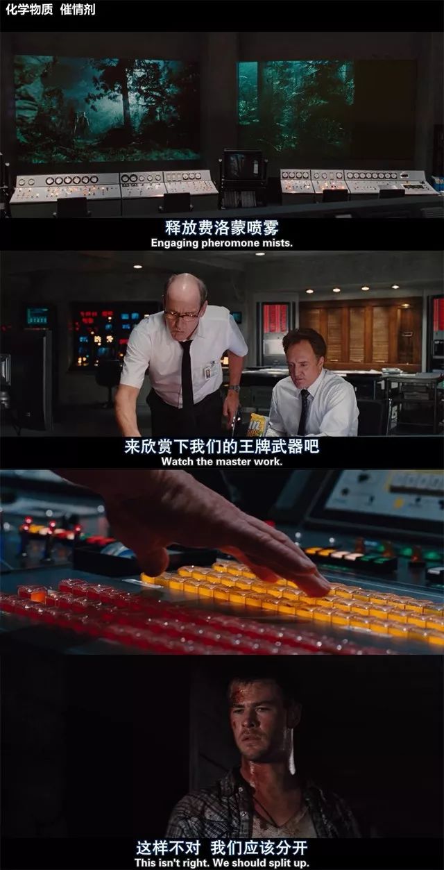 當然了,僅在劇情上的靈機一動,并不能對得起[林中小屋]聲名在外的好評,與劇情的二線,三層相輔相成的是電影對美式恐怖片的解構、調侃,這才是更大的歡樂源泉。