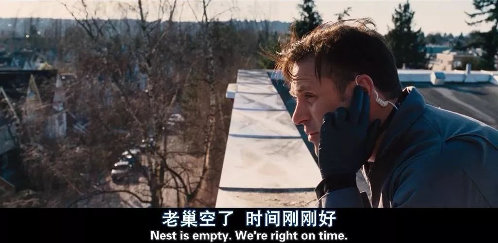 當回溯電影至最開始,即是這倆位中年大叔叨逼叨家長里短,直到“熬出”片名后,才鏡頭一轉,來到溫暖明媚的小鎮,開始關注起那群準備赴死的小青年們。也因此才有了圖中屋頂那位特工的報備。