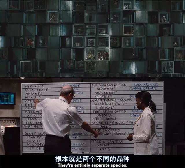 而既然暗喻為美國恐怖片產業,[林中小屋]就該是產業的縮影。而除了劇情上的設計是縮影外,像怪物們,也是各個美式恐怖片怪物的集合。整部電影就像是個恐怖片彩蛋的樂園,每一幀,每一個畫面都可能找個致敬的電影,幾乎濃縮了美式恐怖片的各個經典元素。