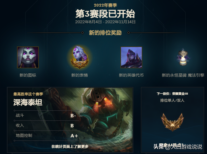 從這份統計表格來看,其實黃金段位已經算是中高段位了。拳頭把每年的勝利皮膚門檻卡在這個段位,從這份玩家段位占比圖來看,也相對合理。到達黃銅或者白銀段位不難,但是要突破上黃金段位需要多多努力。如果LOL的勝利皮膚的門檻過高,比如鉑金。對于大部分低段位玩家來說,這是遙不可及的事情,也不會去努力。如果門檻過低,比如白銀段位,玩家又會覺得這個皮膚一般,不值得去擁有。因此,平衡點很重要。