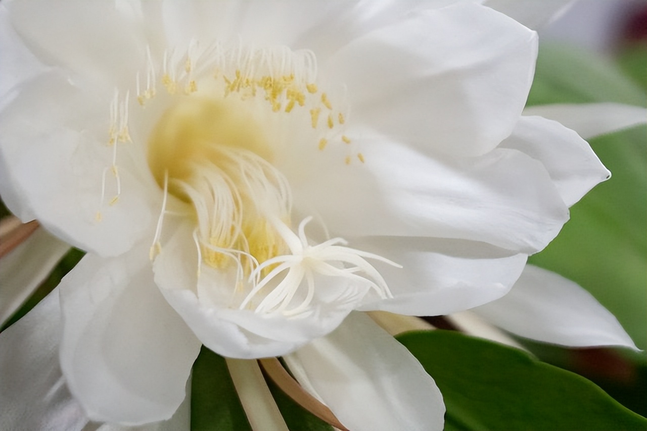 曇花的雌蕊只有1個,長于雄蕊,長相奇特。雌蕊的柱頭有很多分叉,很像1朵白色的小花,很好看。外層花瓣細長如柳葉,內層花瓣圓潤似荷花,數量較多,這是曇花的另一奇妙之處。3年以上的縣花才能開花,花是長在老葉、大葉上的,新葉、小葉上不會有花。滿足開花的主要條件是充足的光照以及合理的水肥管理。