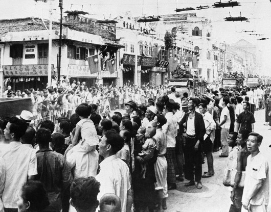 1942年2月15日新加坡被日本侵占。在被日本占領的三年間這個彈丸小島上就有數萬人被日軍屠殺,就連日后的新加坡總理李光耀也險些命喪日軍之手。這還只是直接死于日軍屠殺的人數,并不包括被日軍強征后死亡的勞工。被日軍占領的三年時間是新加坡歷史上最黑暗的歲月,與此同時也是新加坡人自主意識抬頭的歲月。1945年8月15日新加坡人終于迎來了日本的戰敗投降,然而僅僅一個月后英國人又重回新加坡。