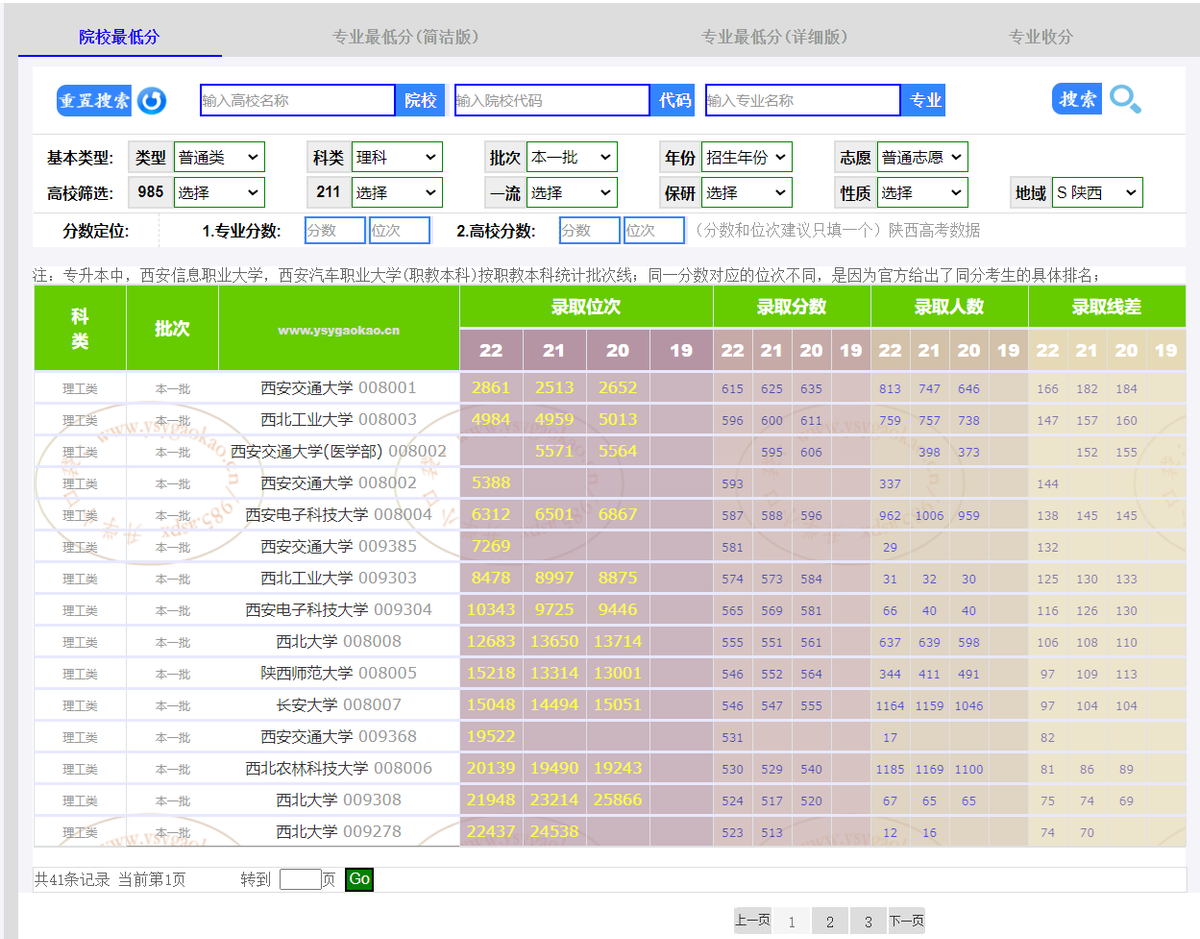 最后來說一下。陜西部分高校的高考錄取分數。以陜西省理工類本一批為例,西安交通大學在陜西省理工類本一批的高考錄取分數線為615分。西北工業大學為596分。西安電子科技大學為587分。西北農林科技大學為530分,西北大學為524分,同一所學校有不同的高考錄取分數線,是因為這些學校的招生代碼并不相同,不同的招生代碼里面包含了不同的招生專業,要根據實際情況來報考。