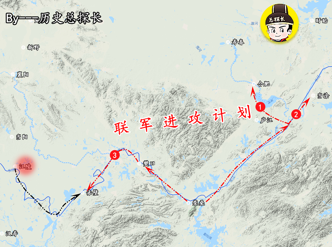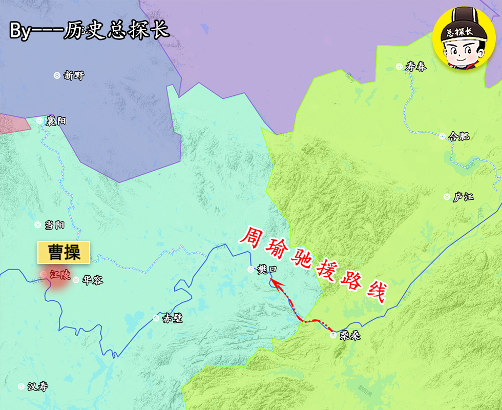 他自己則親統大軍進抵赤壁正面進攻周瑜、劉備。