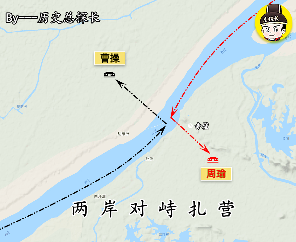 而周瑜也同樣讓大軍撤離江水,屯駐在長江南岸。