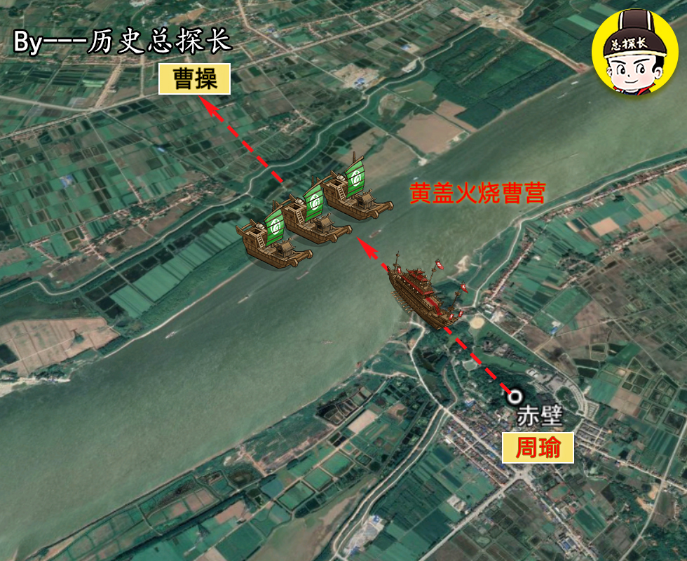 恰逢東南風起,黃蓋帶領投降士兵借風行駛,朝著曹操的江北岸駛去,到達江心時,黃蓋突然下令將這十艘蒙沖戰船升起船帆,船只的速度變得更快,直接沖到了離曹操岸邊還有兩里的地方。