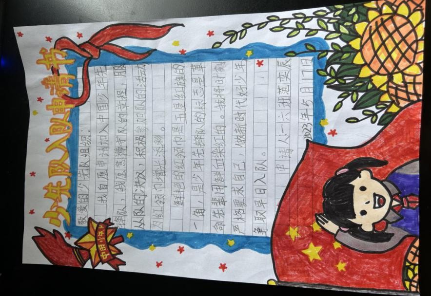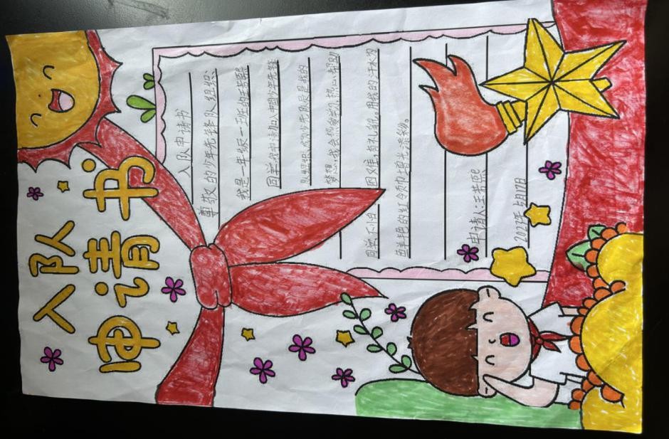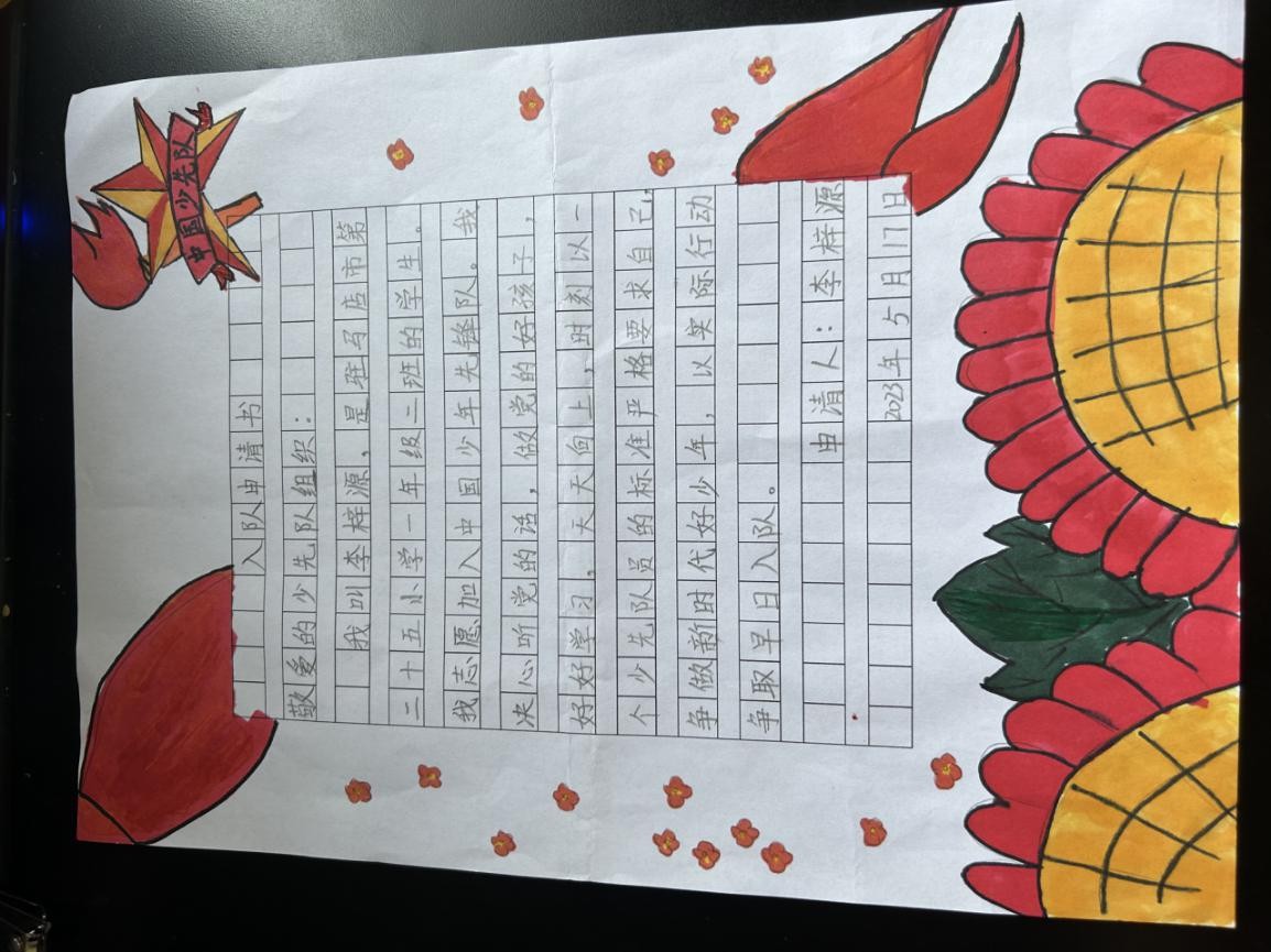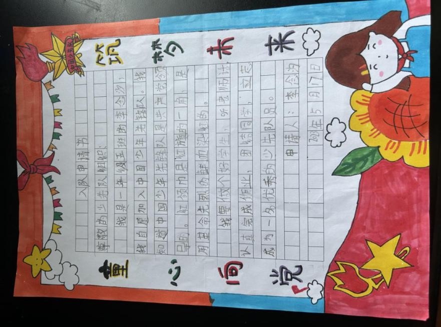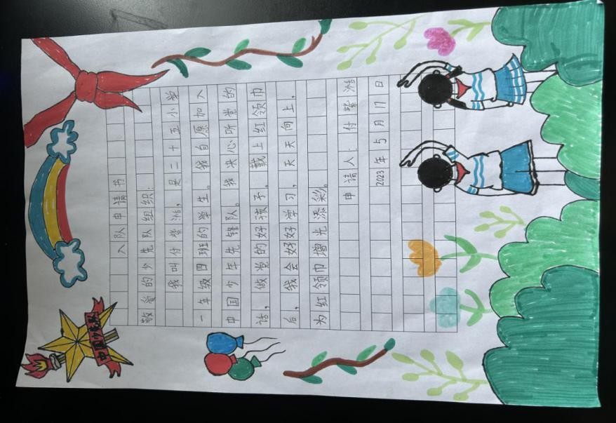 導讀紅旗一角,鮮艷榮光,飄蕩在接班人的心上。為了更好地激發孩子們加入中國少年先鋒隊的熱情,堅定少先隊員的理想信念,增強少先隊員入隊儀式感,駐馬店市第二十五小學一年級的部分同學設計了一張張精美的入隊申請書,