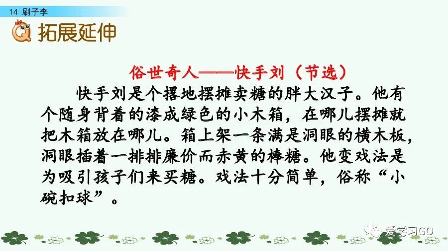 第二部分(第3-11自然段)通過曹小三親眼所見,從正面和側面兩個方面印證了“刷子李”的高超技藝名不虛傳。