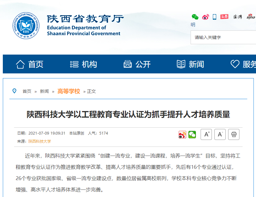 新中國成立后,我國一直重視工程教育,1958年,懷著“為國家培養更多輕工業技術人才”初心的陜西科技大學應運而生。學校緊緊圍繞“創建一流專業,建設一流課程,培養一流學生”目標,堅持將工程教育專業認證作為推進教育教學改革、提高人才培養質量的重要抓手,形成了由教務處牽頭,相關職能部門協作,各學院具體實施,廣大師生積極參與的專業認證工作機制。學校以工程教育專業認證為抓手提升人才培養質量的做法受到了陜西省教育廳的“點贊”。