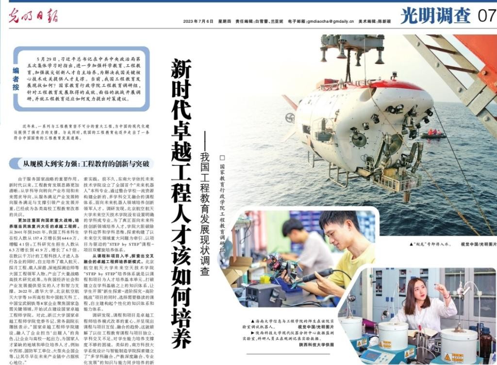 《光明日報》整版聚焦新時代卓越工程人才培養,刊圖為陜科大開展實驗場景
