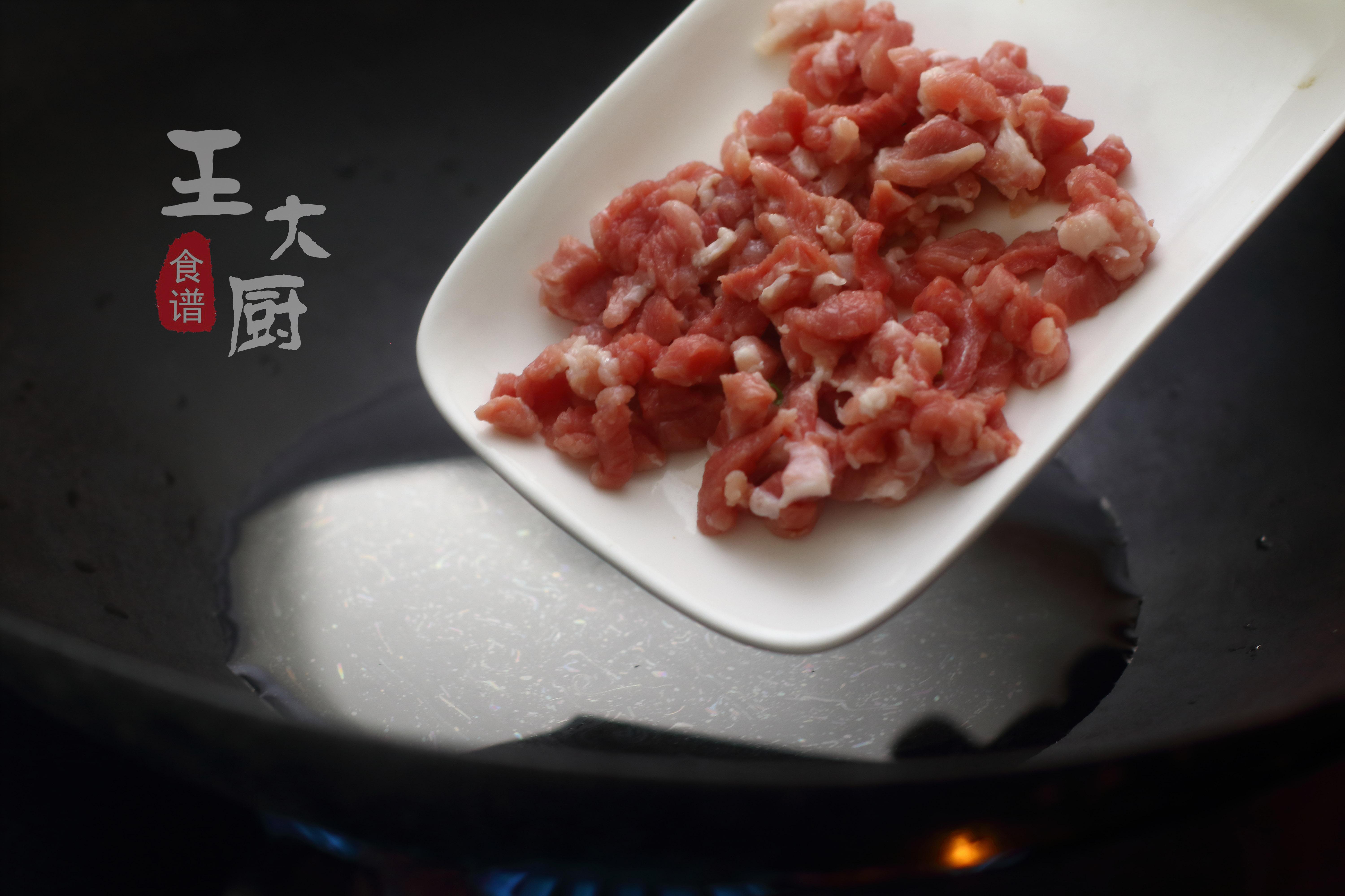 7、再將準備好的瘦肉放在鍋中。