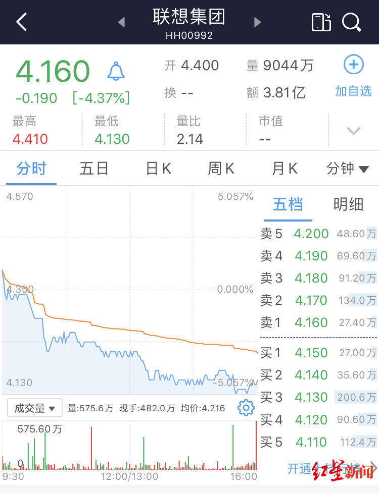 盡管聯想集團上一財年業績還算不錯,但第四財季(2020年第一季度)凈利潤同比大降64%。花旗、瑞銀等下調了聯想集團目標價,同時下調2021及2022財年盈利預測。5月21日,聯想集團股價下跌4.37%,收報4.16港元。