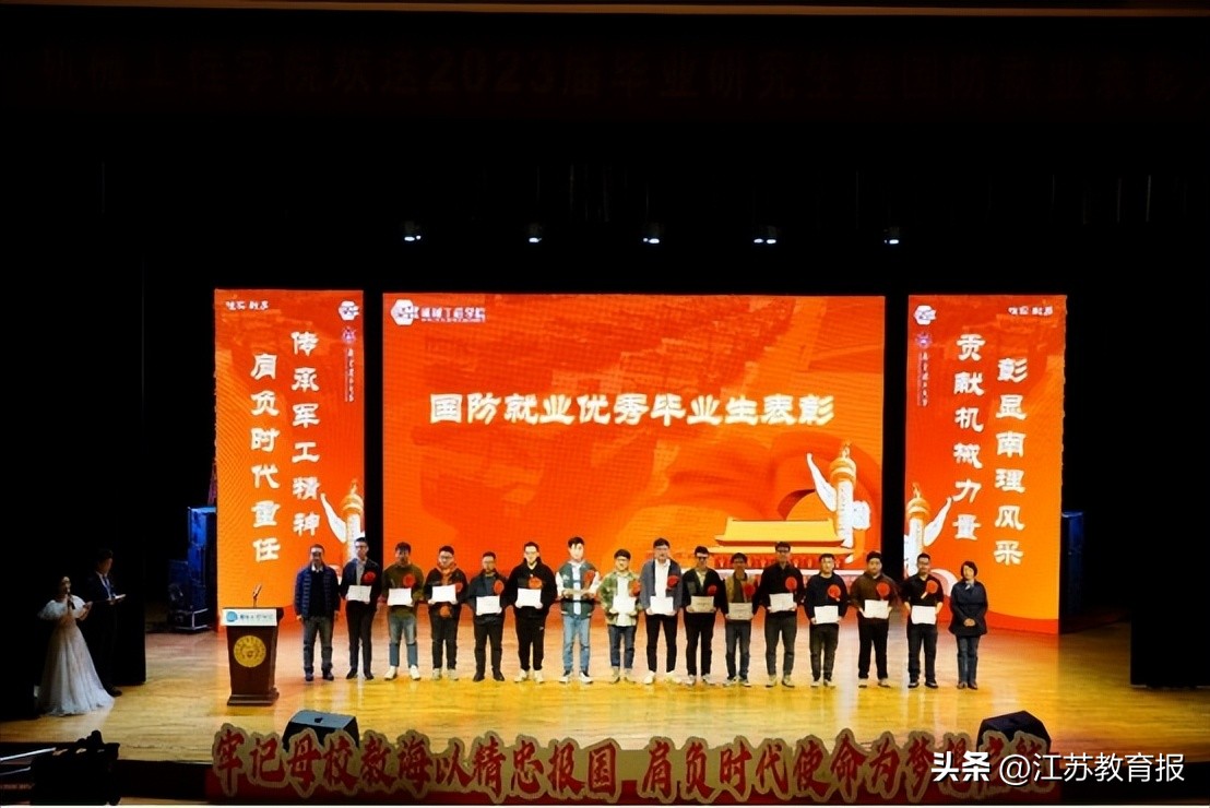 第二篇章“碩果累累 表彰先進”,表彰國防就業優秀畢業生和校級優秀畢業生。劉婷婷、陳雄分別宣讀國防就業優秀畢業生和校級優秀畢業生的表彰頒獎詞,劉婷婷、郭銳、陳龍淼、朱志偉為兩類優秀畢業生代表佩戴大紅花并頒發榮譽證書。