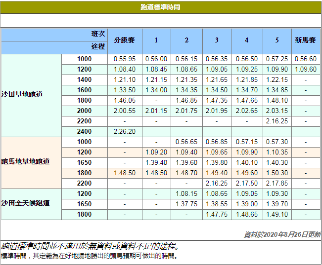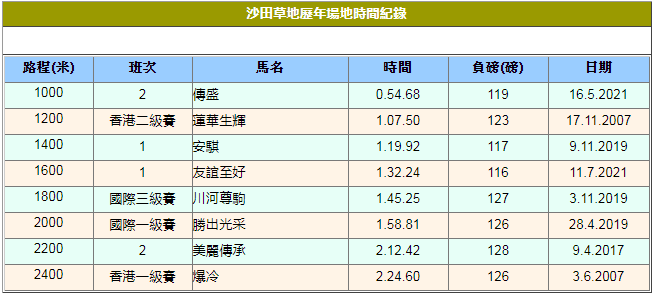 以上截圖為香港沙田草地歷年場地時間紀錄表