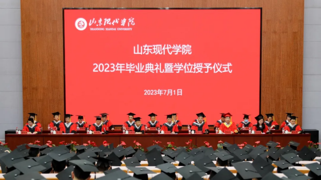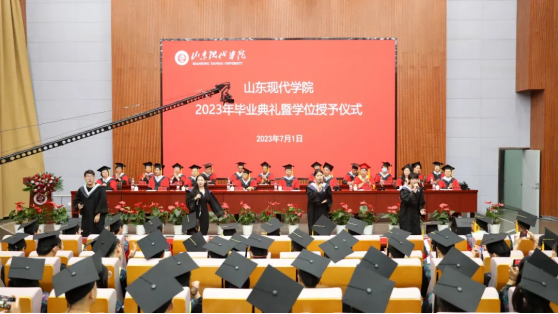 2023年7月1日,山東現代學院2023年畢業典禮暨學位授予儀式在學校圖書館報告廳舉行,本次典禮采用線上線下相結合,同步直播的方式進行,為圓滿畢業、開啟人生新征程的現代學子送上美好祝福。