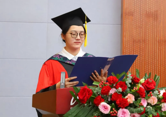 藥學院老師張美玲作為教師代表發言。她為圓滿完成學業,即將開啟人生新征程的畢業生們送上殷切囑托,希望同學們無論走到哪里,從事何種工作,都要保持一顆火熱的心,持續學習、持續奮斗,成為一名了不起的現代人。