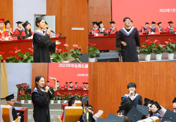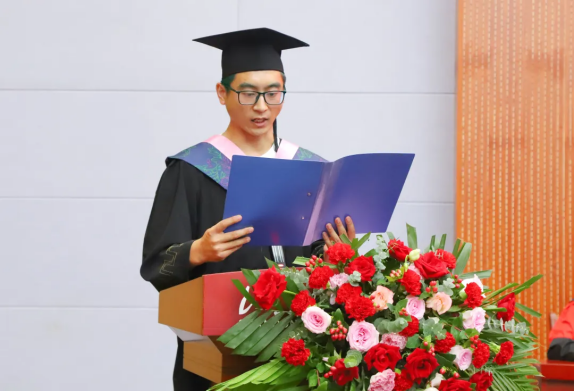 人文與管理學院2023屆畢業生唐杰作為學生代表發言,他以“感恩”“奉獻”“奮斗”三個“人生關鍵詞”為線索,深情回顧了四年來在校學習生活的點滴和成長,表達了對母校、老師和同學的感激之情。