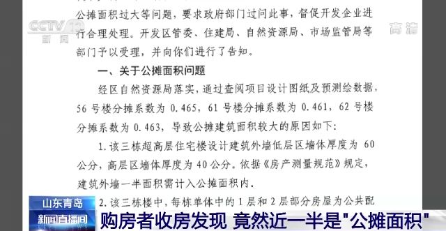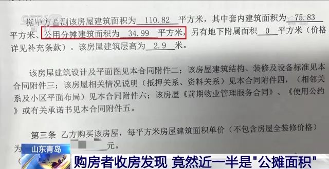 買房的時候,很多人都會詢問房子的“公攤面積”是多少,畢竟掏出這么多錢,不少人還要貸款,每一平方米都很在意。在山東青島,有購房者收房時卻發現,自己買的房子,公攤面積達到了46%以上,接近一半面積的房子被公攤給攤出去了。到底怎么回事,一起來看記者的調查↓