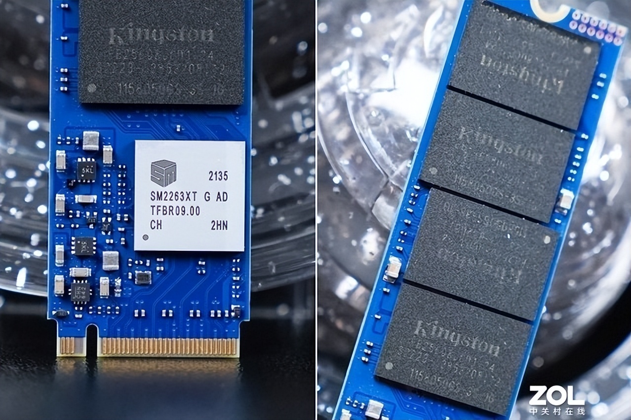 金士頓NV1配備入門級PCIe3.0固態硬盤常用的慧榮SMI SM2263XT主控芯片,同樣為DRAMLess方案,內建4個閃存通道。