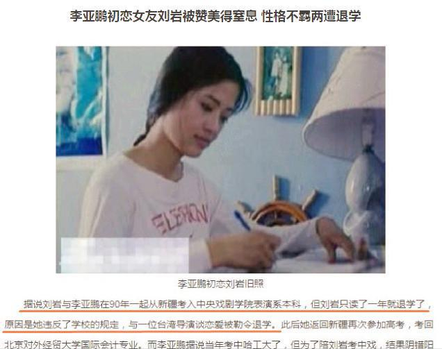 上高中時,很多孩子到了情竇初開的年齡,他們心中都有暗自喜歡的另一半,李亞鵬也不例外。他喜歡的這個女孩名叫劉巖,長得非常漂亮,可以說是校花級別的人物,身邊不乏其他追求者,然而在“競爭”如此激烈的情況下,李亞鵬卻輕而易舉的獲得了劉巖的芳心。