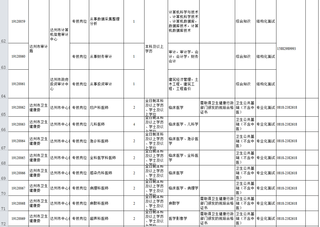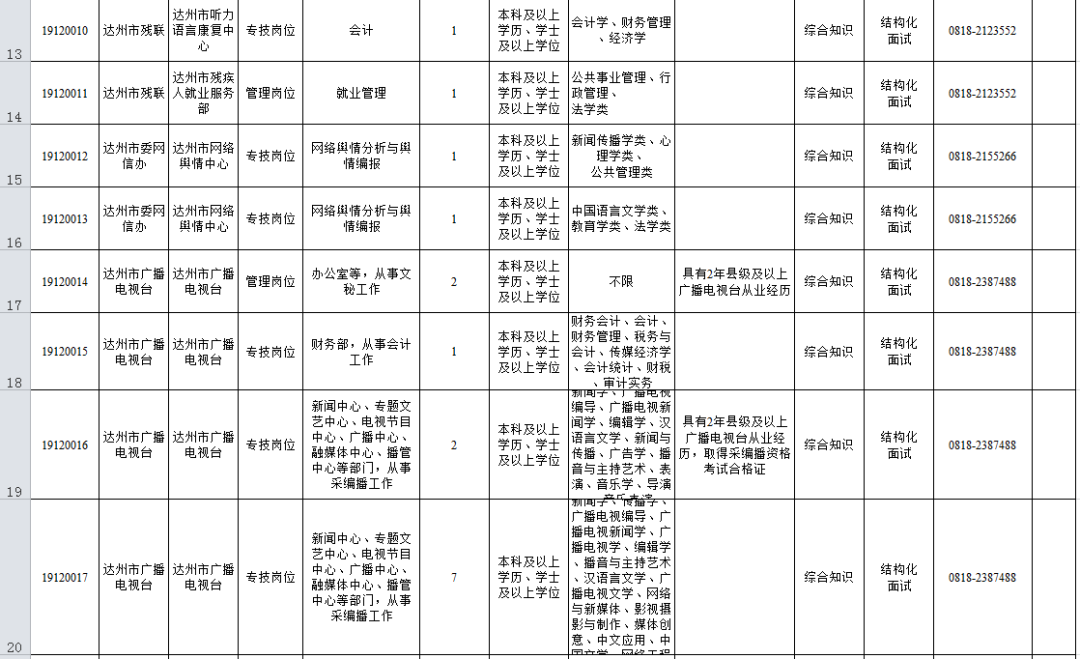 根據《四川省事業單位工作人員招聘工作試行辦法》規定及用人單位需求,按照“公開、平等、競爭、擇優”原則,達州市部分事業單位擬面向社會公開考試招聘事業單位工作人員。現將有關事項公告如下: