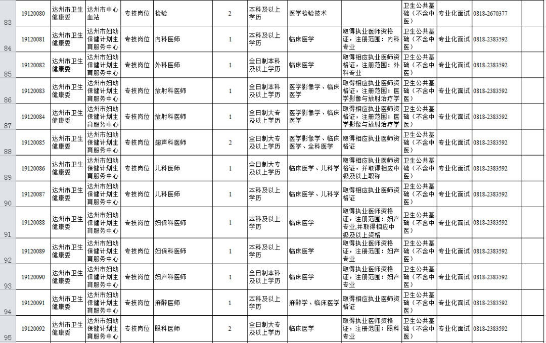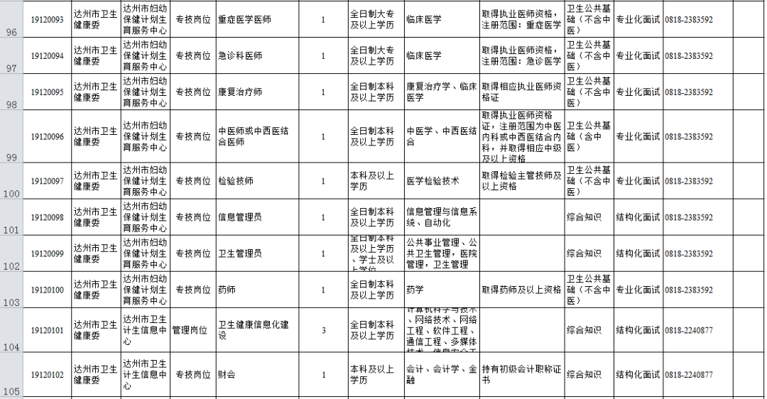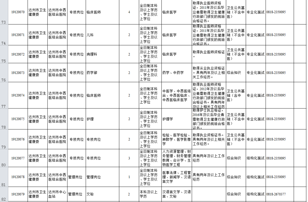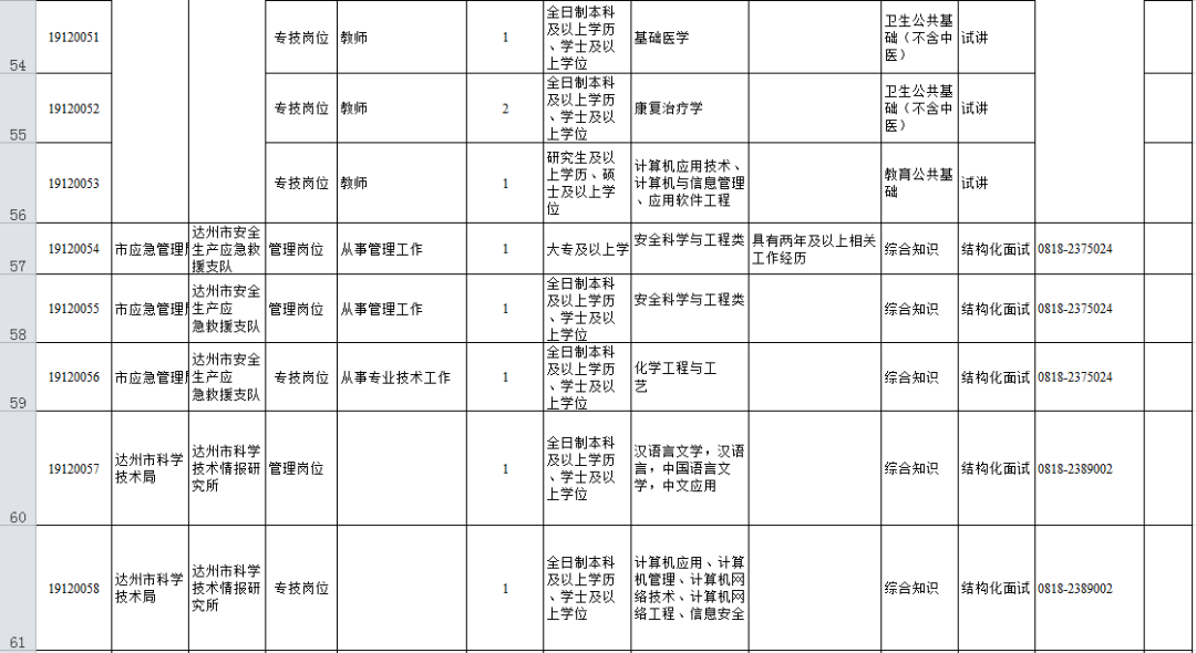 1.達州市2019年下半年公開考試招聘事業單位工作人員職位表(市本級、通川區、達川區、萬源市、宣漢縣、渠縣、開江縣、經開區)