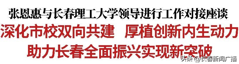 導讀11日,省委常委、市委書記張恩惠與長春理工大學黨委書記楊玉新、校長楊華民進行工作對接座談,深化拓展市校全方位合作,為推動全面振興實現新突破凝聚力量。王志厚、高志國參加活動。座談中,張恩惠充分肯定長春理